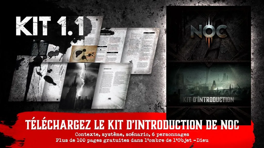 La question de l’offre ludique a été centrale dans le développement du contexte et des règles. NOC est présenté comme un jeu dystopique et occulte, horrifique et post-apocalyptique. Chacun de ces adjectifs renvoie à une proposition facilement identifiable. Mais c’est dans leur alchimie que naît NOC.